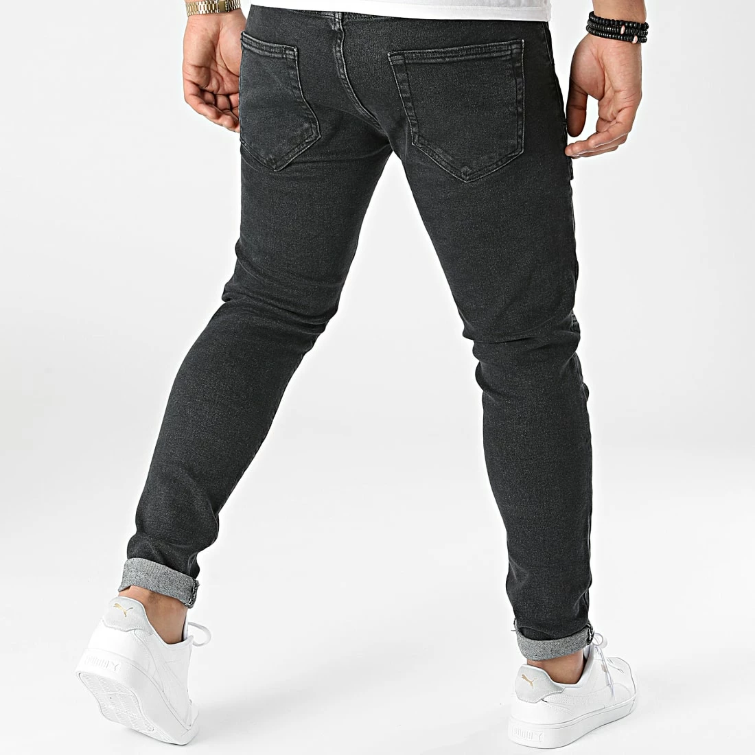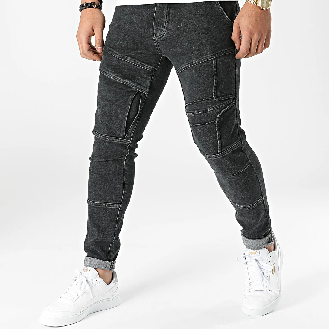 • Jean finition délavée avec poches cargo et rabats décoratifs