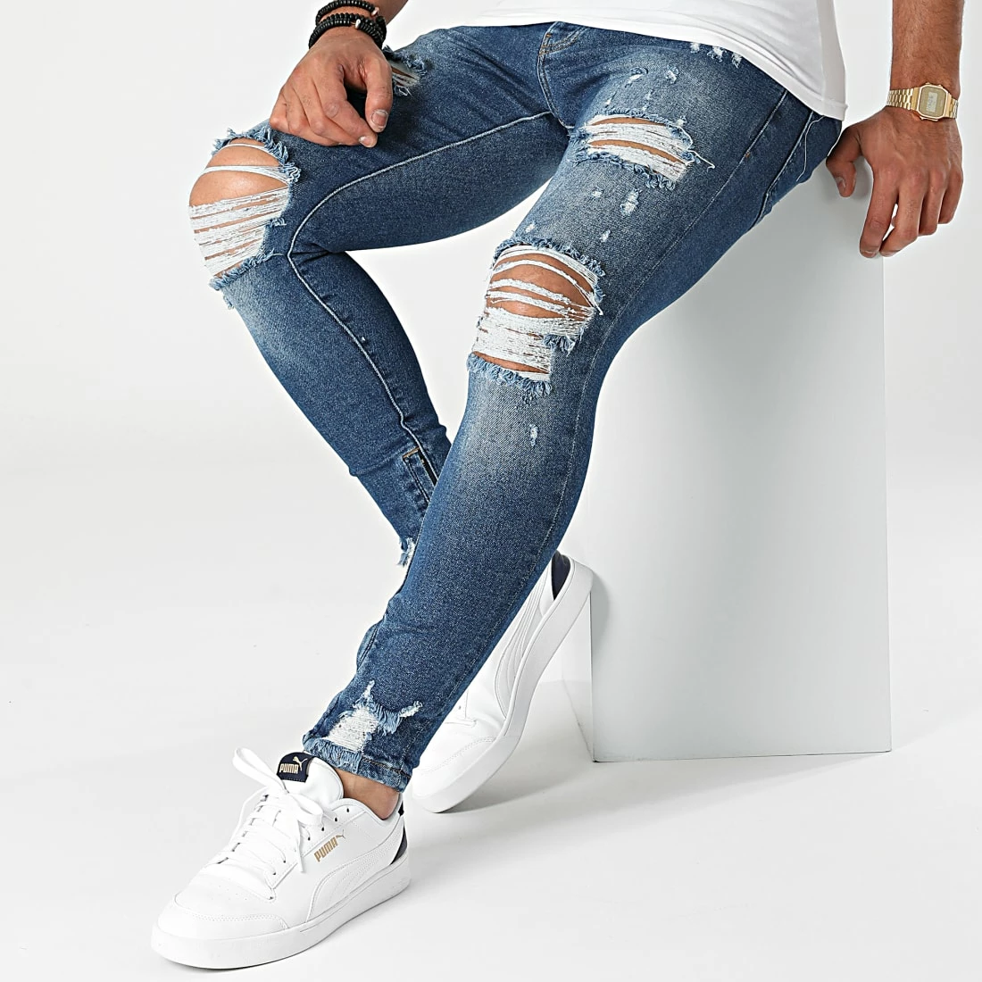 • Jean skinny délavé avec finition usée