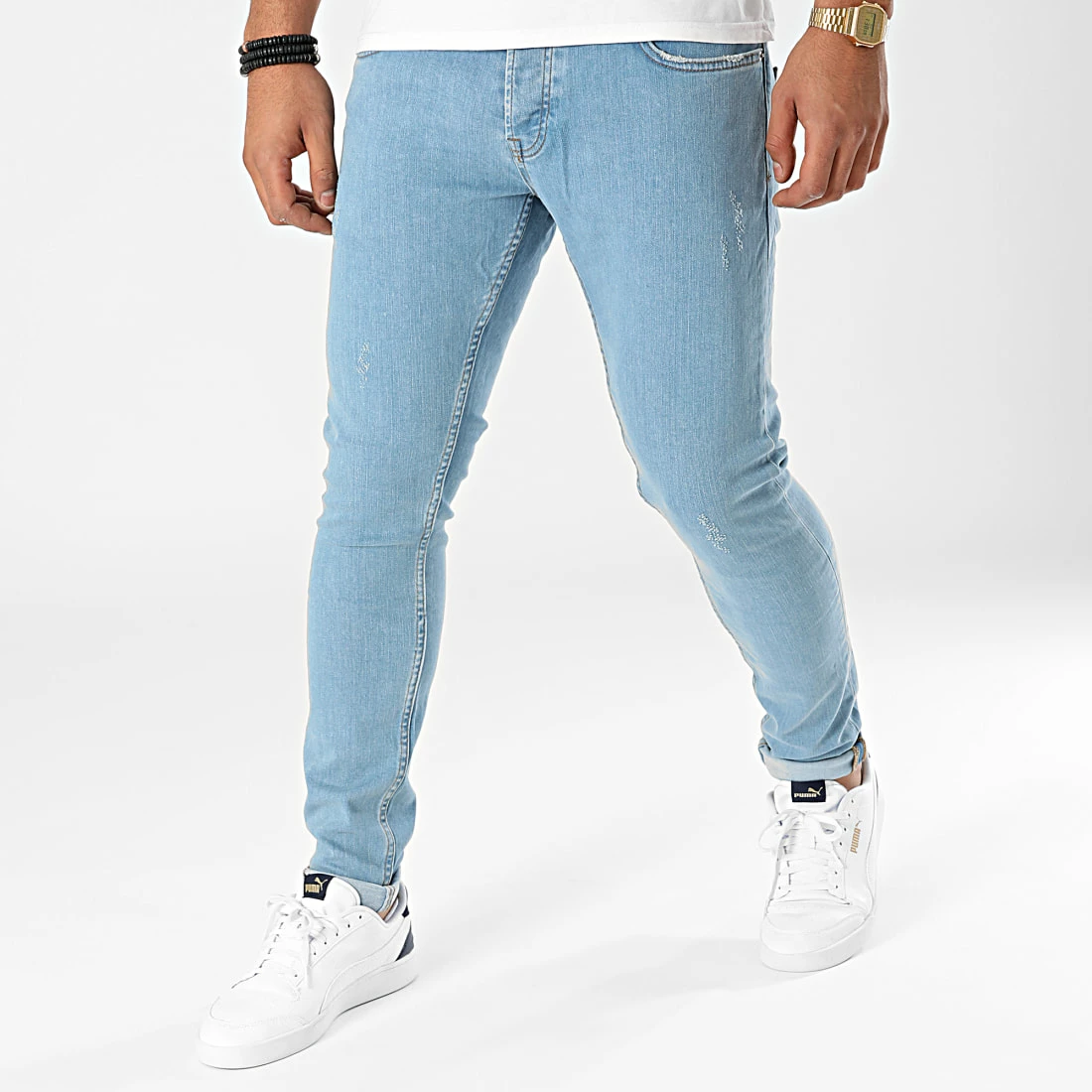 • Jean skinny délavé avec finition usée