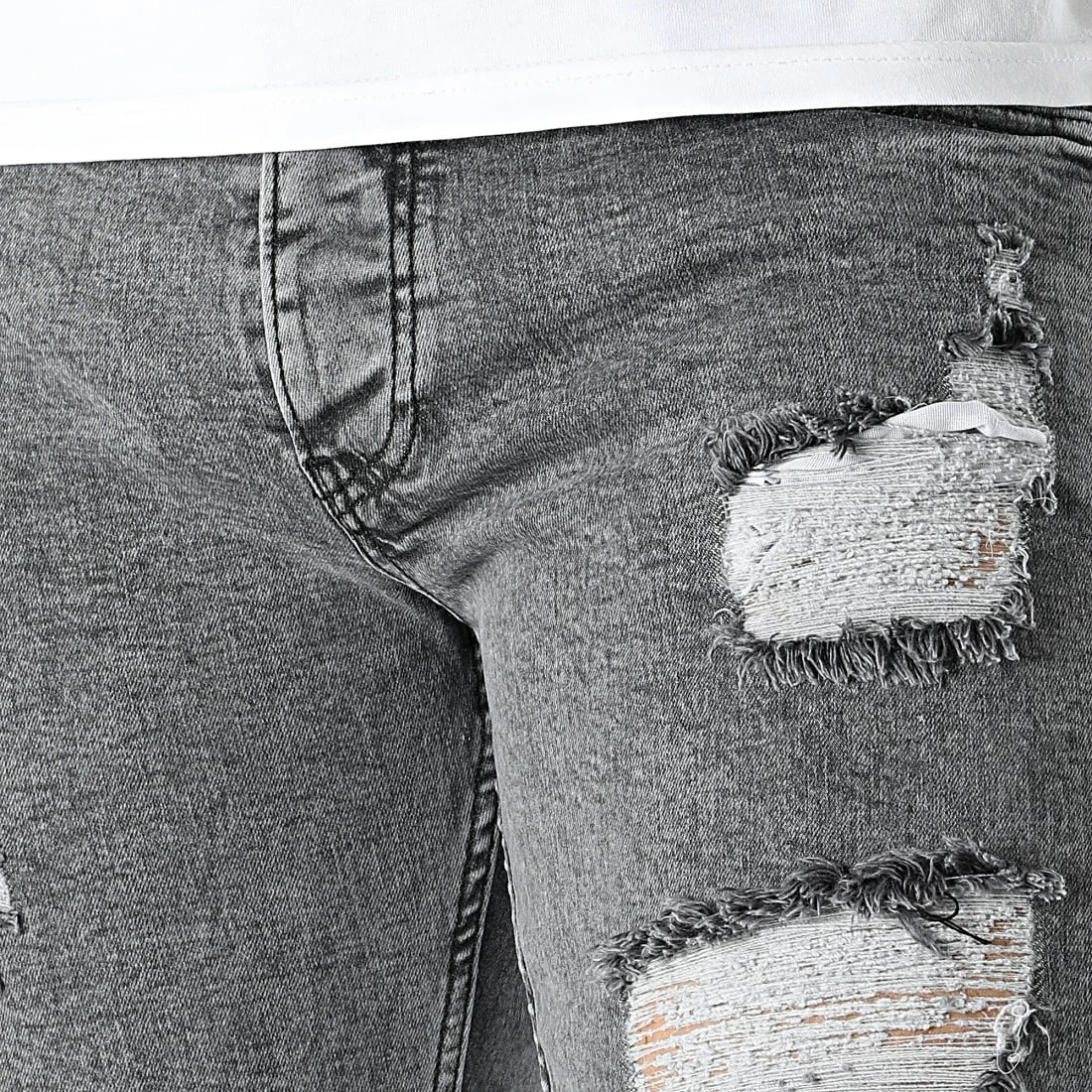 • Finition usée et délavée avec trous apparents