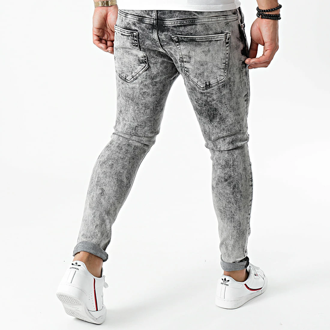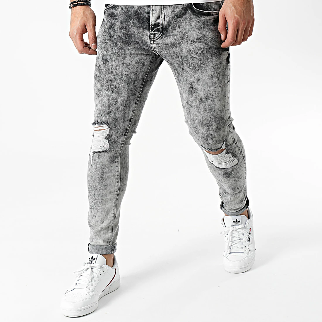 • Jean stretch finition usée et délavée avec trous apparents