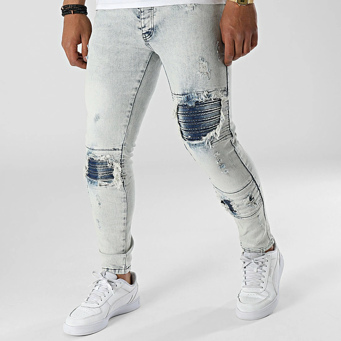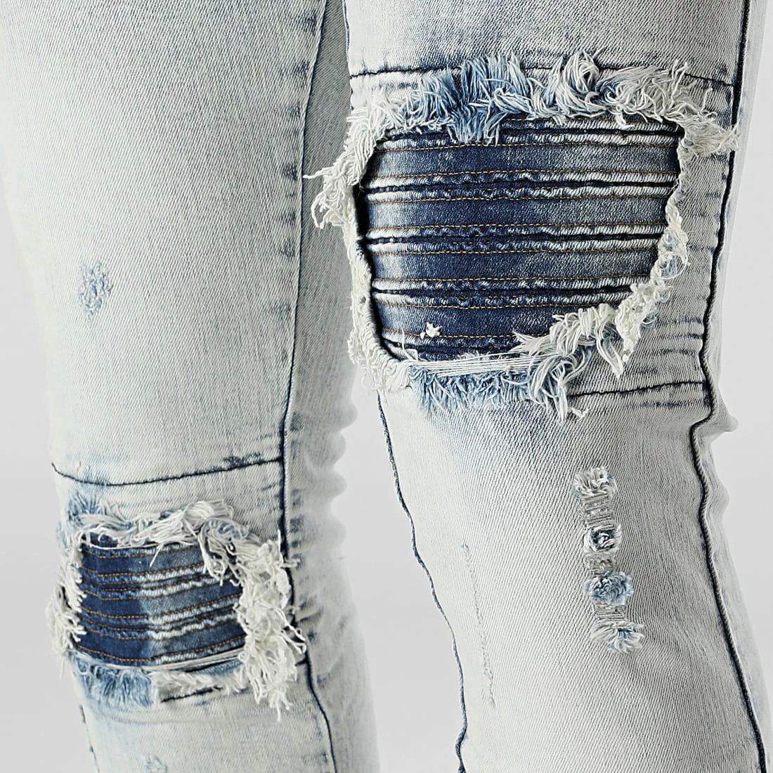 • Finition usée, délavée et avec rapiéçages