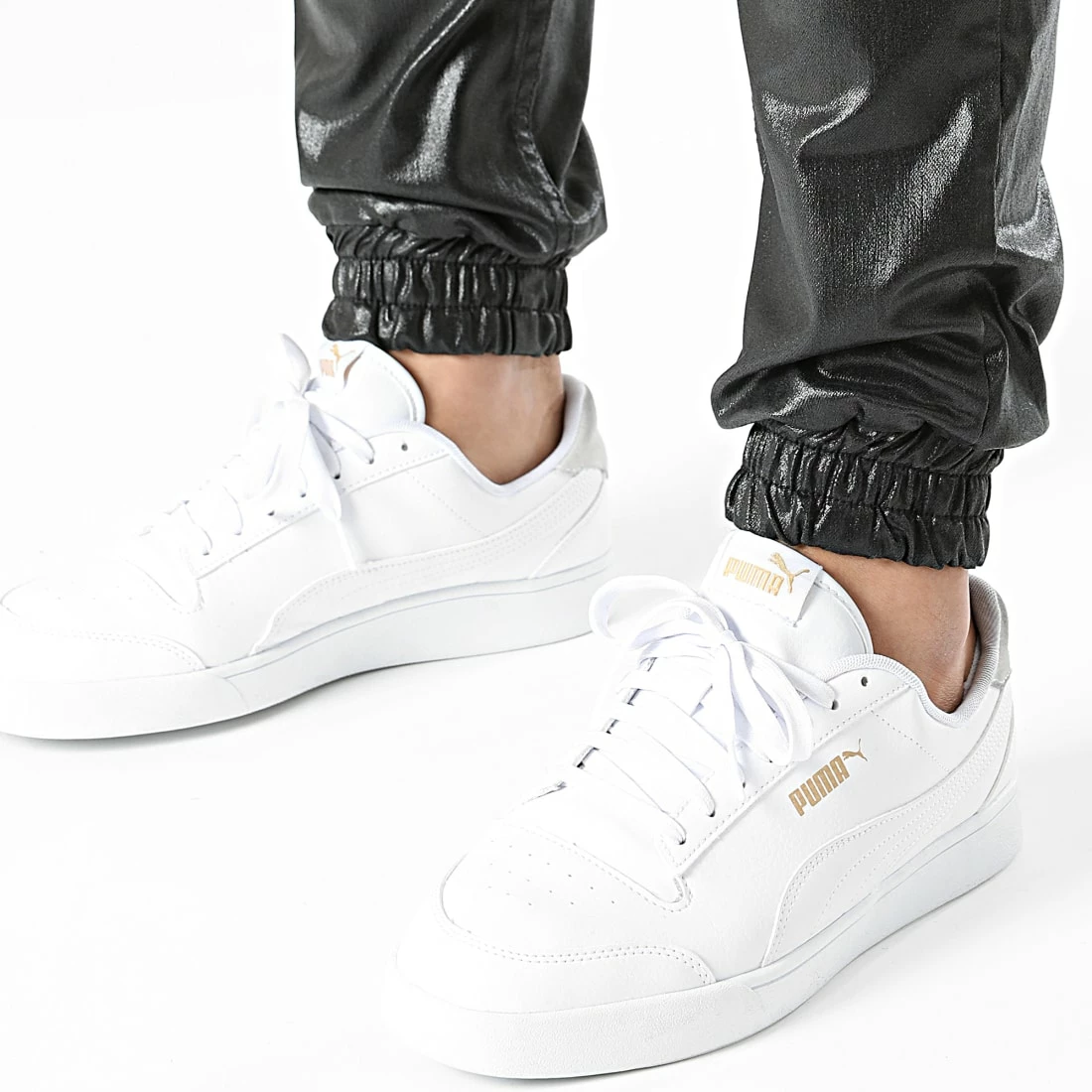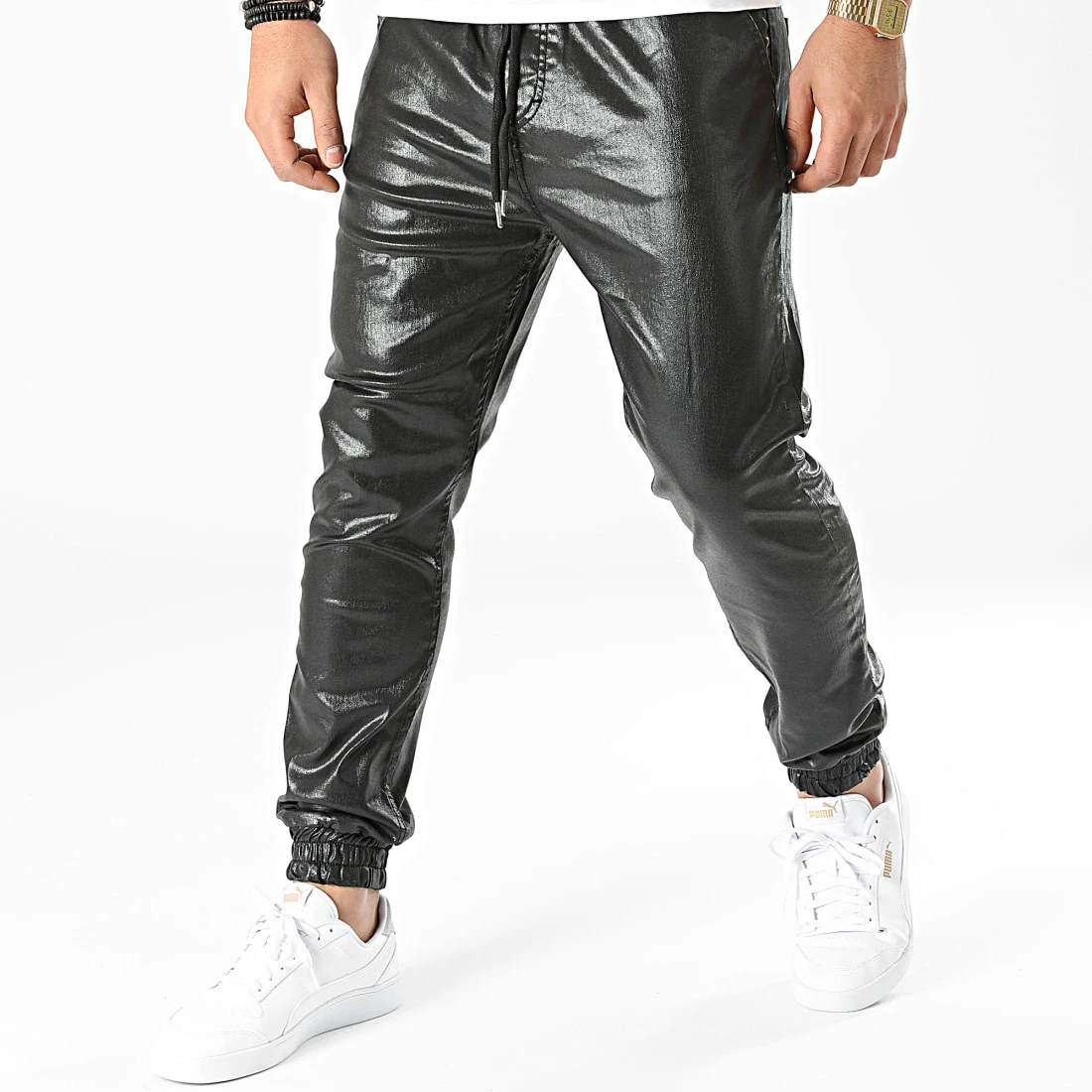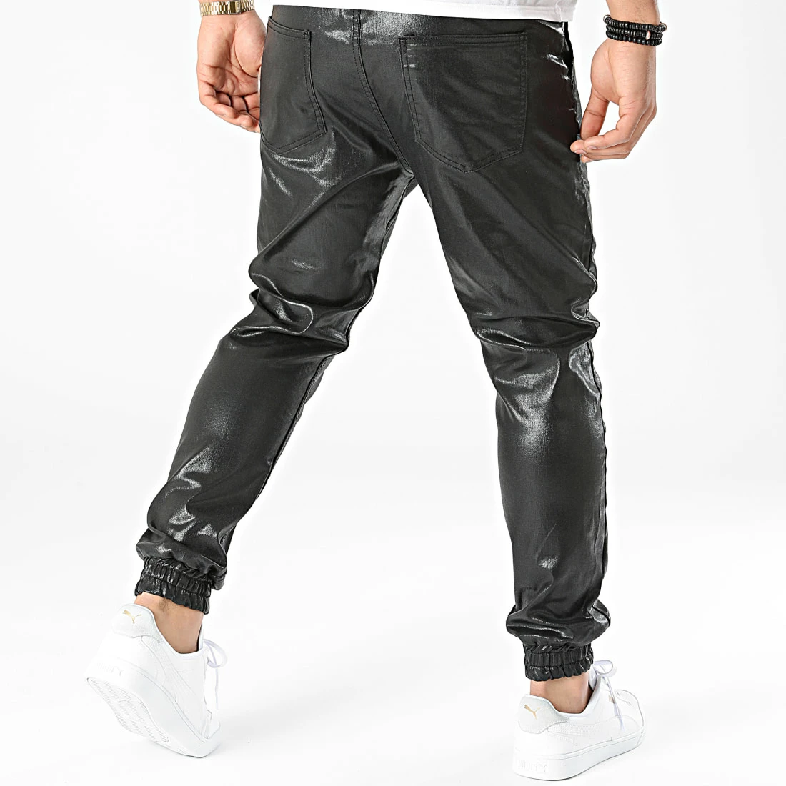 • Jogger pant uni en coton stretch avec revêtement enduit