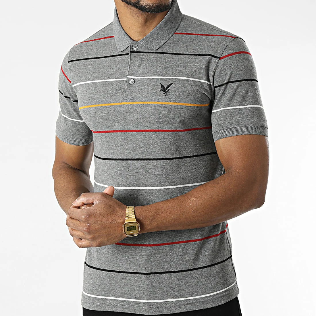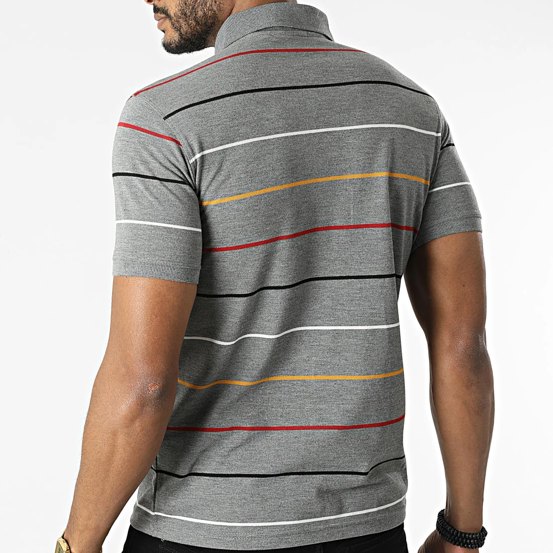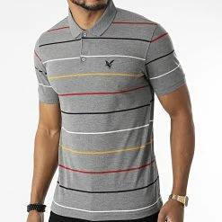 • Polo manches courtes à rayures brodé visuel sur la poitrine