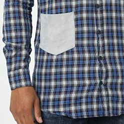 Sortie 🛒 Surchemise Carreaux 8041 Bleu Marine Noir de 2Y Premium 👍