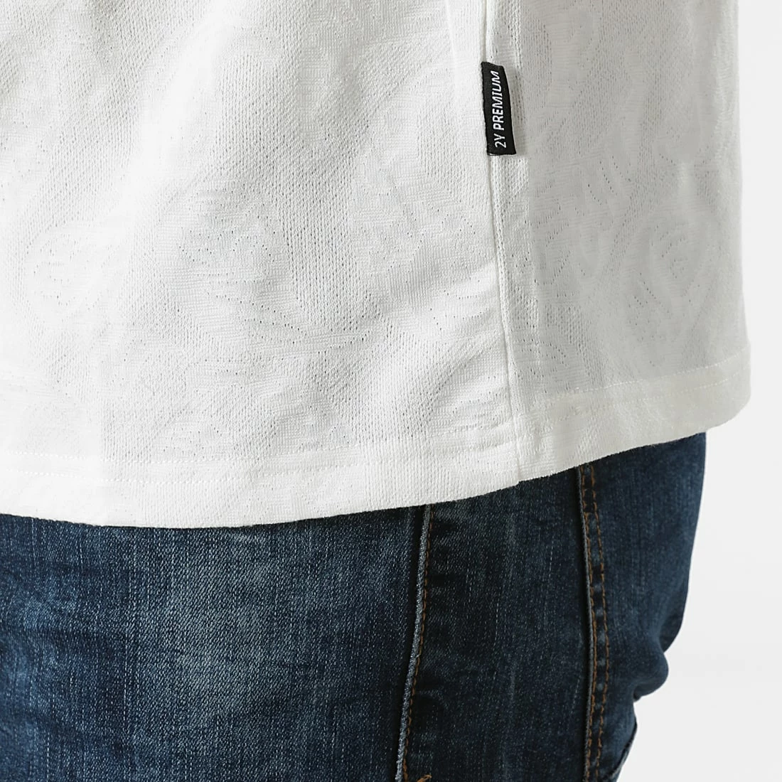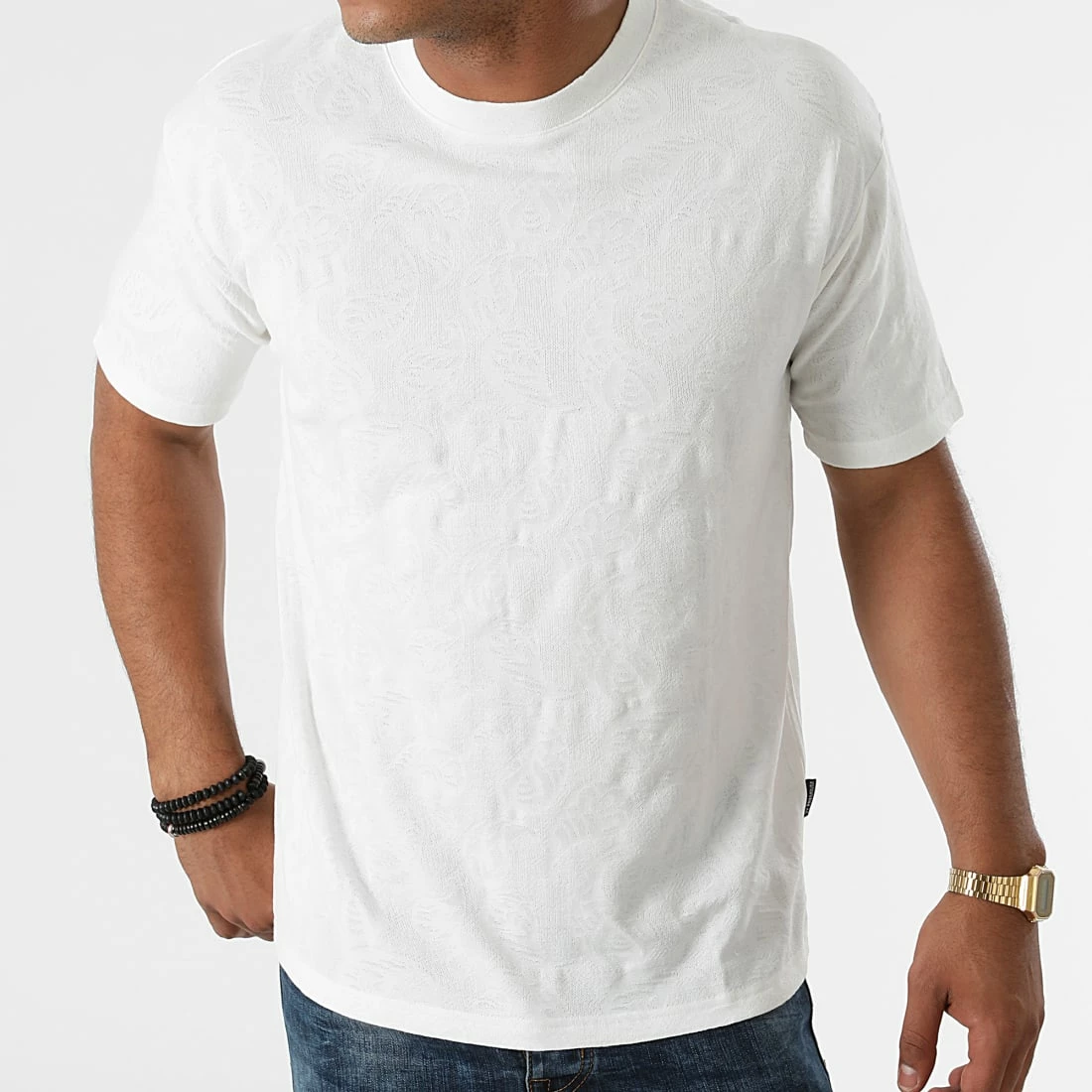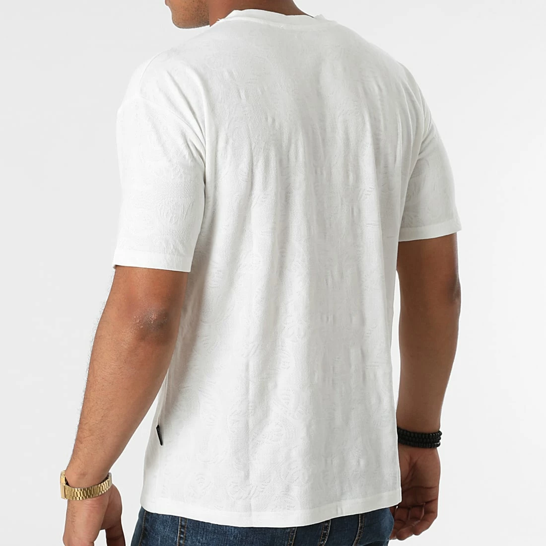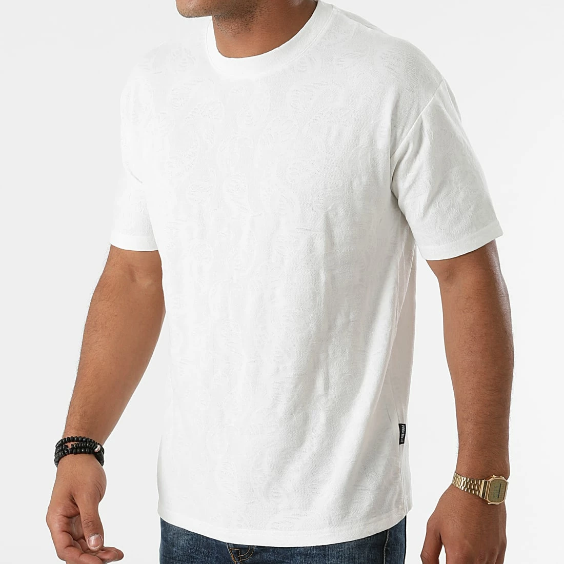 • Tee shirt avec motif bandana brodé ton sur ton dans la maille