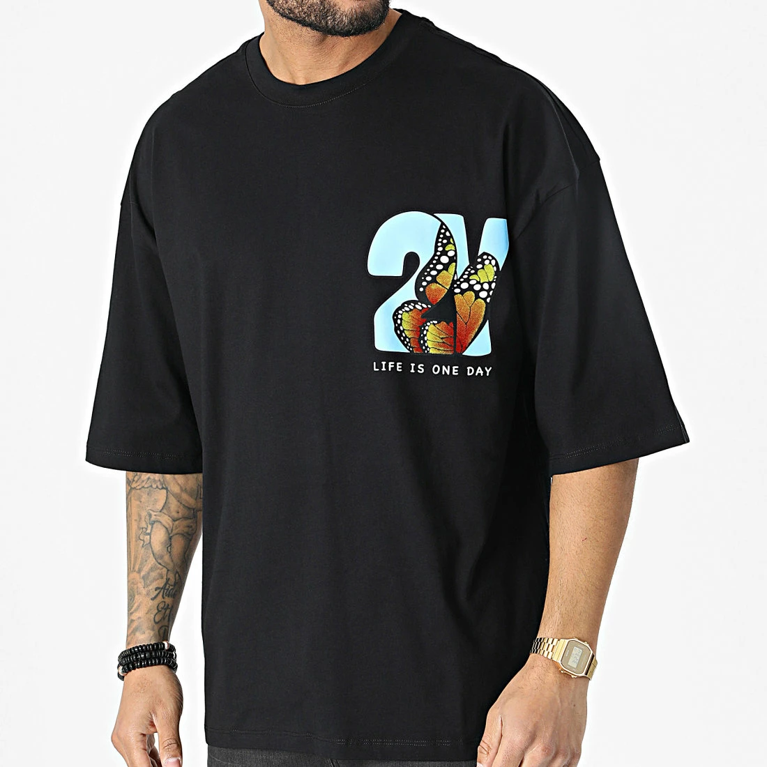 • Tee shirt ample avec visuel à l’avant et au dos