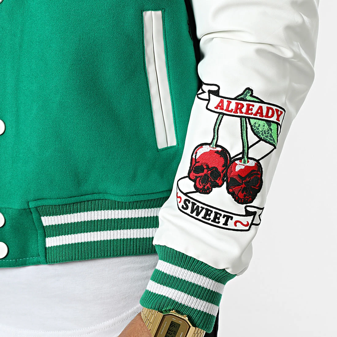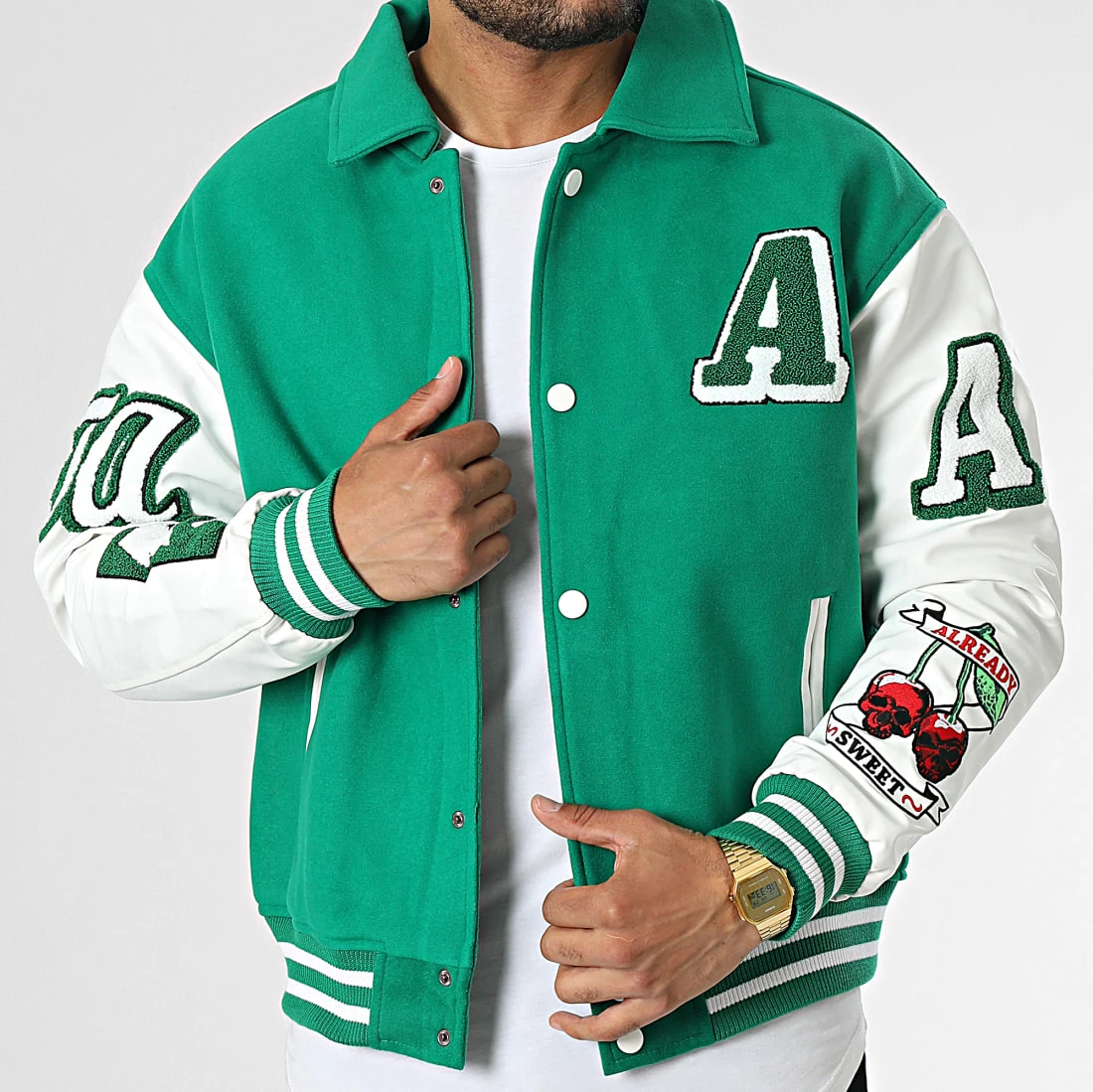 • Veste teddy premium style baseball tendance avec manches en cuir véritable